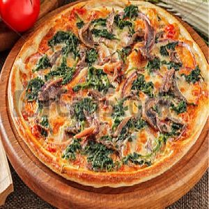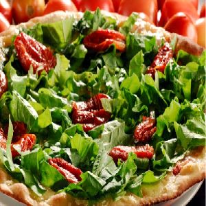 azeitonas, Cebola, Champignon, Escarola, Molho de tomate, Muçarela, Orégano, Palmito, Rúcula, Tomate, Tomate seco