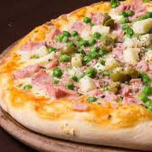 azeitonas, Calabresa, Cebola, Creme de leite, Ervilha, Lombo canadense, Milho verde, Molho de tomate, Muçarela, Orégano, Palmito, Presunto