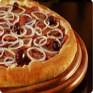 azeitonas, Calabresa, Cebola, Molho de tomate, Muçarela, Orégano