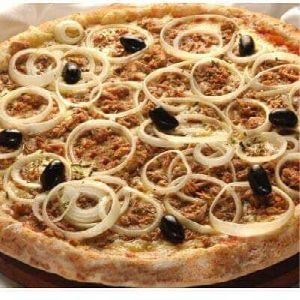 Atum, azeitonas, Cebola, Molho de tomate, Muçarela, Orégano