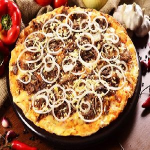azeitonas, Cebola, Costela bovina desfiada, Molho de tomate, Muçarela, Orégano