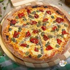 Alcaparras, Molho de tomate, Muçarela, Parmesão, Tomate seco