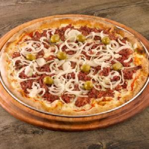 azeitonas, Calabresa, Carne seca desfiada, Cebola, Molho de tomate, Muçarela, Orégano, Pimenta calabresa, Pimentão